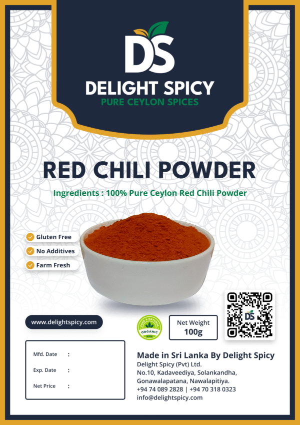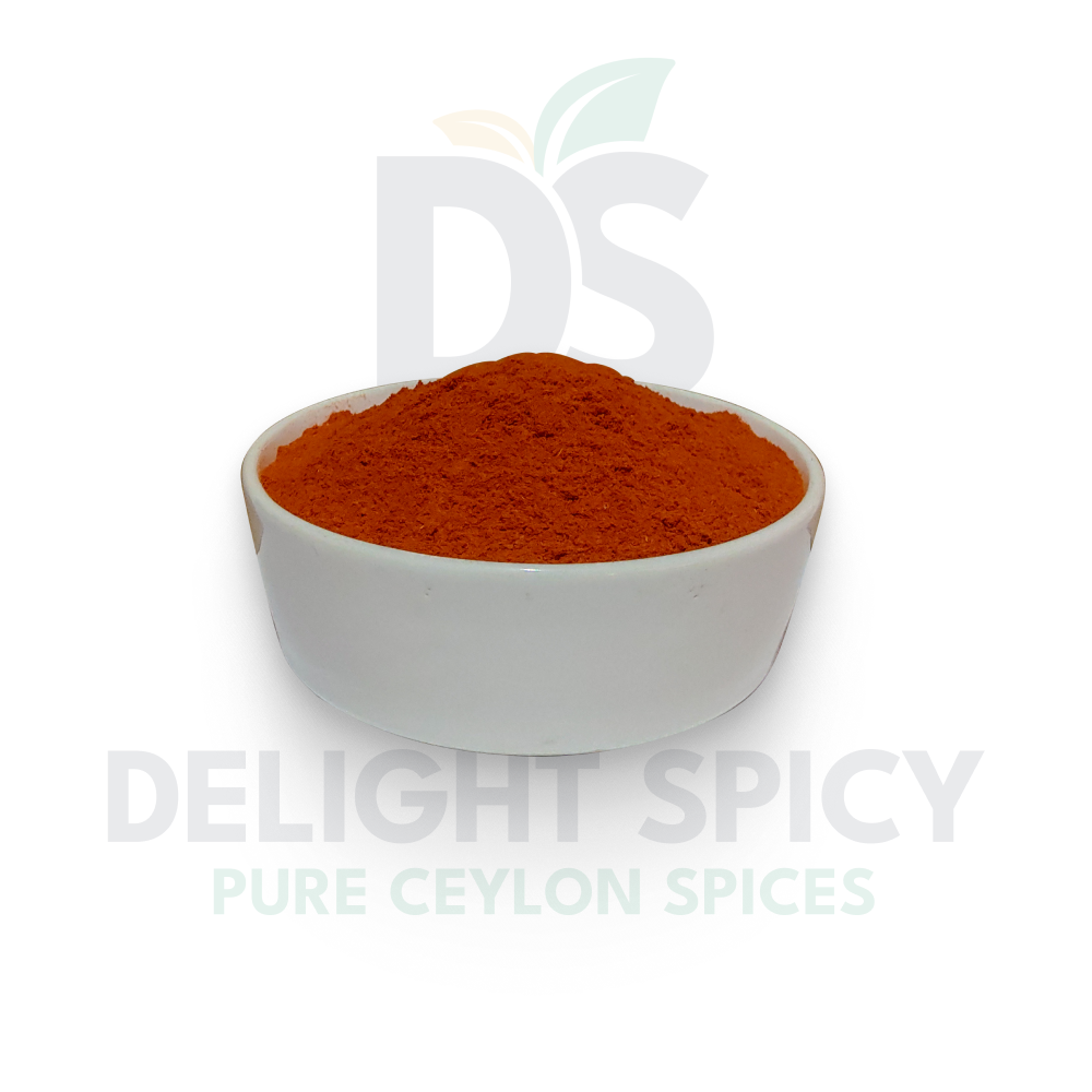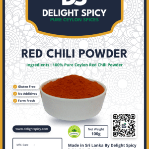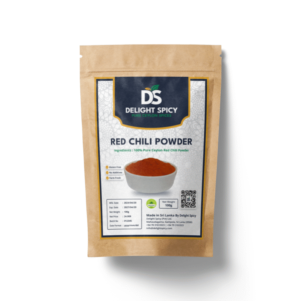 Red chili powder made from sun-dried Sri Lankan chilies offers vibrant color and bold heat. Perfect for curries, stir-fries, sauces, and marinades, this spice brings authentic warmth and intensity to your dishes.